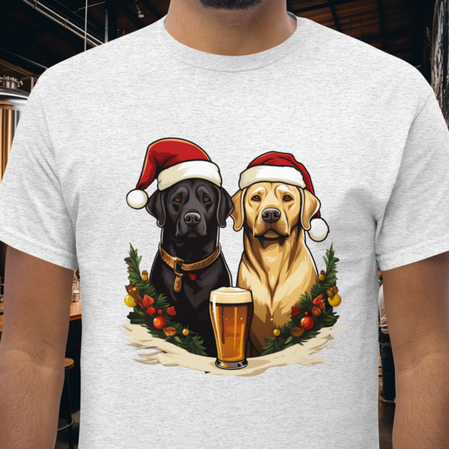 🎄🐾 Introducing the "Lab Lager Wonderland" T-Shirt: A Perfect Blend of Canine Cheer and Festive Brews! 🍻🐶